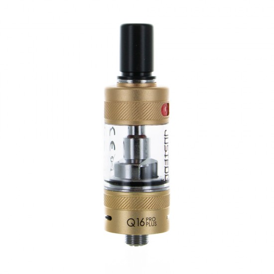 Le remplissage du Cleaomiseur Q16 Pro Plus s'effectue sur le haut après avoir fait coulisser le Top Cap. Faites pivoter le haut du Clearomiseur dans le sens de la flèche, pour faire apparaître l'ouverture, ainsi vous pourrez remplir votre Clearomiseur de votre e-liquide. Une fois le remplissage effectué, faites de nouveau pivoter le haut du Clearomiseur pour le refermer.