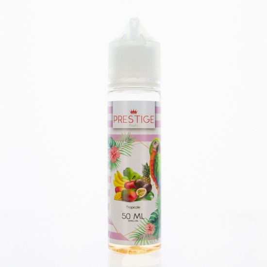Le e-liquide Tropicale de Prestige Fruits au format 50ml est composé d'arômes de pomme, banane, fruit de la passion, ananas et mangue.