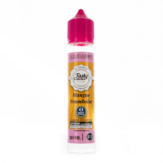 Le e-liquide Mangue Framboise de la gamme Tasty Collection de chez Liquidarom au format 50ml associe des arômes de Mangue et de Framboise.