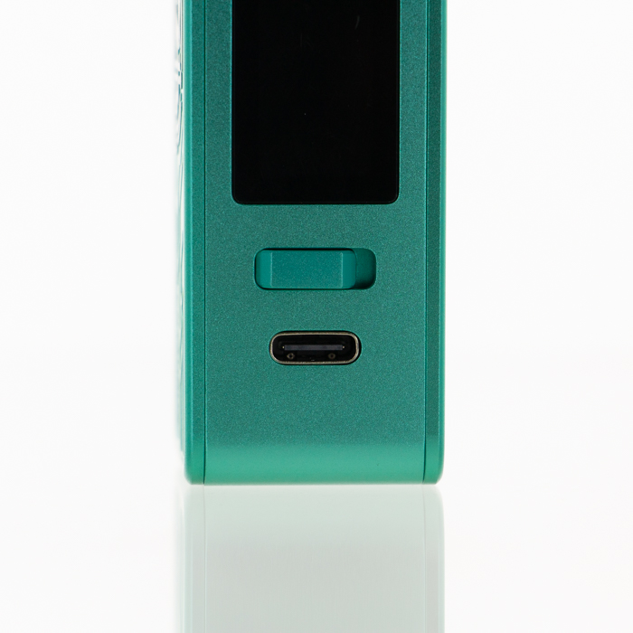 La partie boîtier est équipée d'une trappe pour l'accu, d'un écran couleur TFT personnalisable, d'un bouton de réglage, d'une molette pour régler la puissance délivrée et d'un switch.