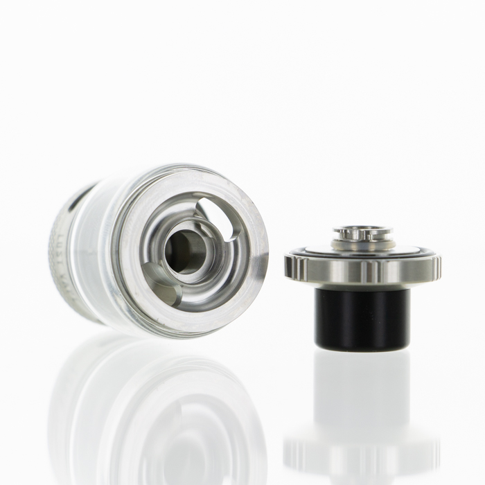 Le clearomiseur Sub-Coo se remplit par le dessus ! Il suffit de dévisser le top cap pour voir apparaître deux orifices ronds qui entourent la cheminée.
