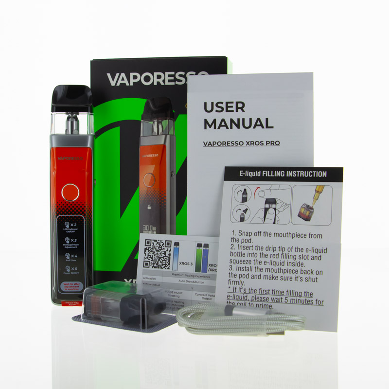 Cette dernière utilise des Xros Pro de 3 ml rechargeable en e-liquide et utilisable jusqu’à ce que la résistance intégrée soit hors d'usage.